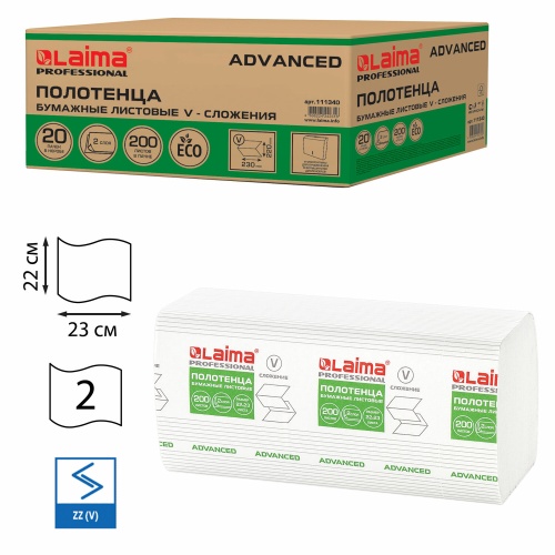 Код товара: 00-00114302Бумага - полотенце 200шт. LAIMA белое 21*21,6 (H3), V-сложение, 112140