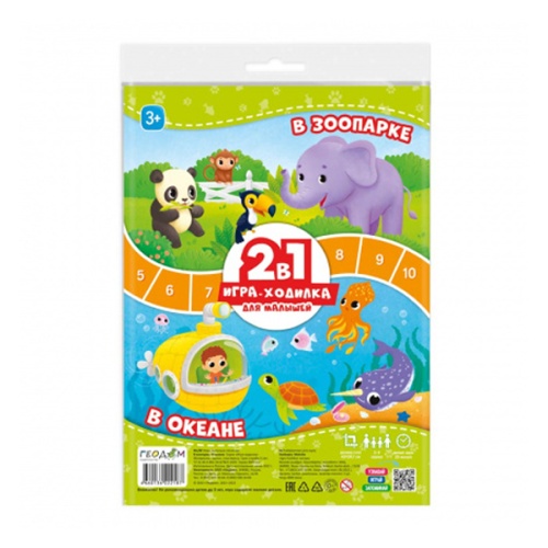 Игра настольная ГеоДом Ходилка. 2 в 1 В зоопарке + В океане для малышей