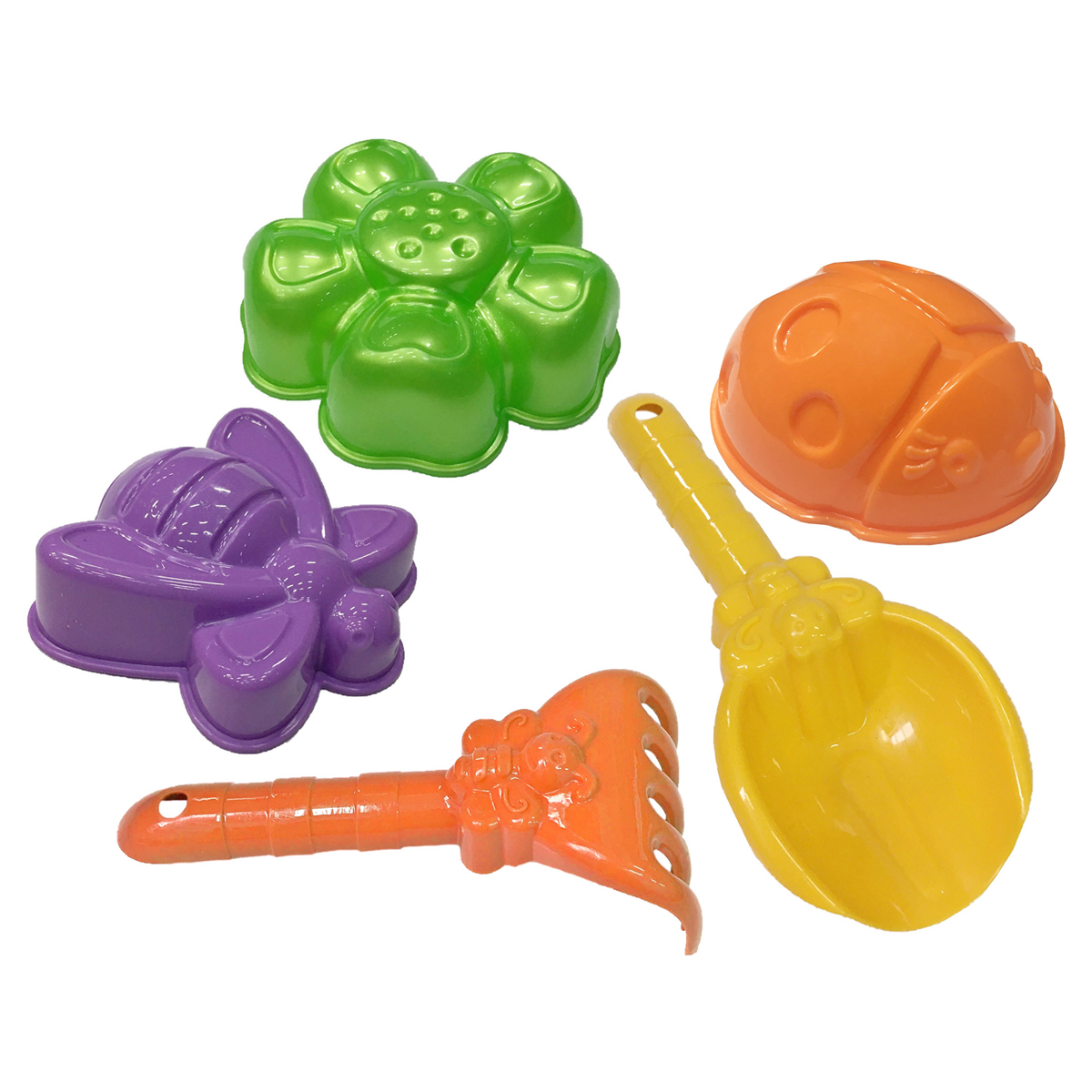 Код товара: 00-00100529Набор для песка Три совы Насекомые, 5 предметов (совок, грабли, 3 формочки)