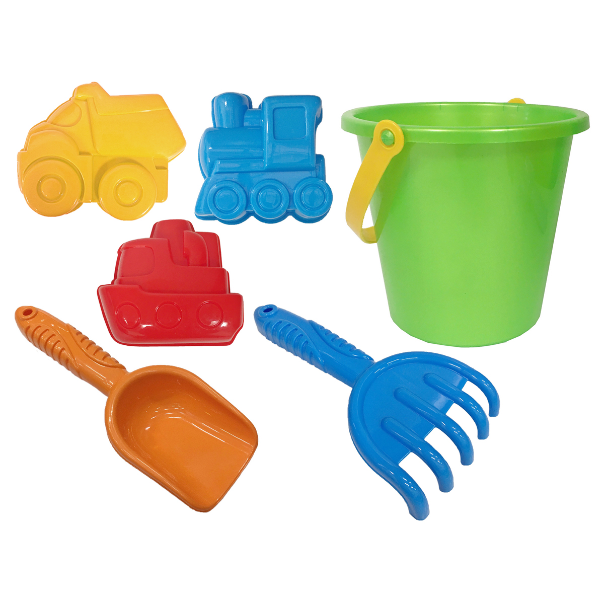 Код товара: 00-00100531Набор для песка Три совы Транспорт, 6 предметов (ведро, грабли, совок, 3 формочки)