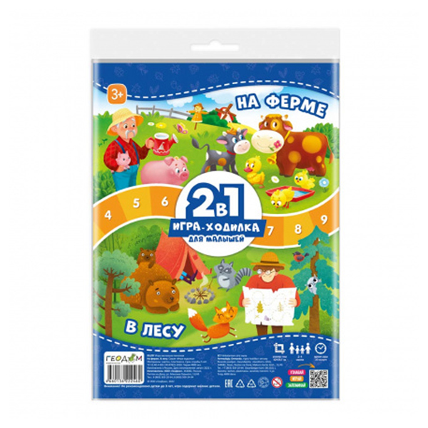 Код товара: 00-00096371Игра настольная ГеоДом Ходилка. 2 в 1 На ферме + В лесу для малышей