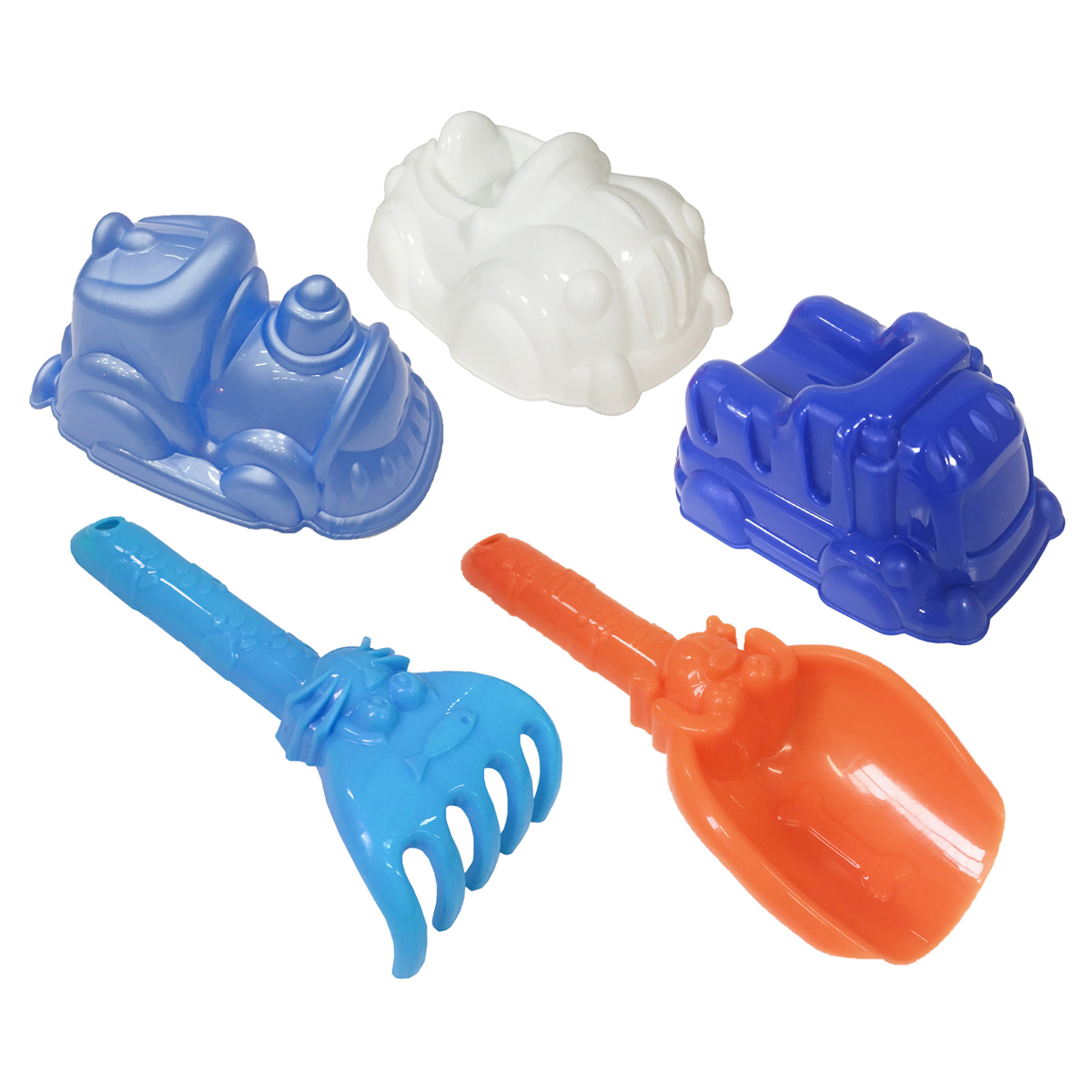 Код товара: 00-00100530Набор для песка Три совы Транспорт, 5 предметов (совок, грабли, 3 формочки)