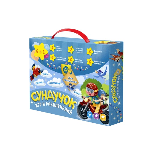 Код товара: 00-00109594Набор подарочный Геодом Сундучок игр и развлечений для мальчика 6 в 1