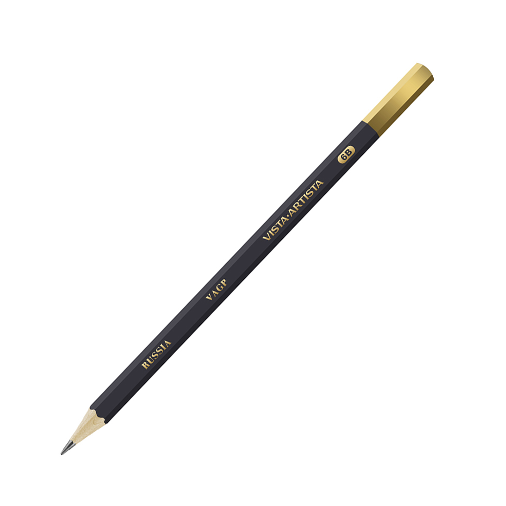 "VISTA-ARTISTA" VAGP Шестигранные карандаши наивысшего качества, идеальный инструмент для рисунка, эскизов и чертежей. Корпус изготовлен из качественной, химически необработанной древесины липы, с хорошей проклейкой "тела" карандаша, благодаря чему обеспечена легкая и мягкаязаточка любым типом точилок. При изготовлении грифеля использована специальная система против ломкости. Матовое антискользящее покрытие, строгий классический дизайн.