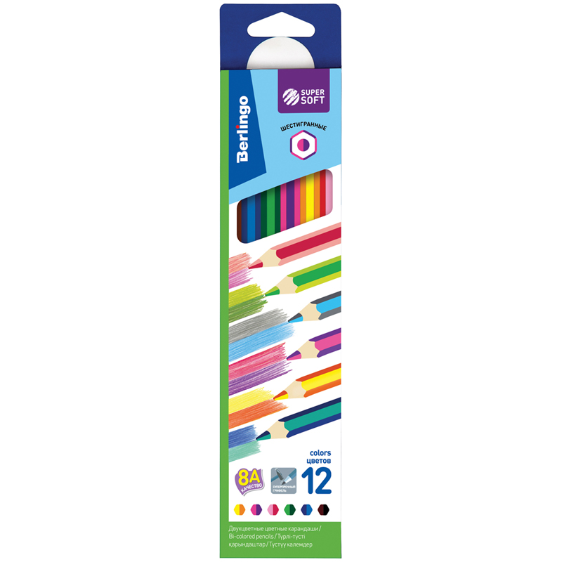 Код товара: 00-00085723Цветные карандаши 6 цв. Berlingo SS03912 SuperSoft. 2in1 двухцветные