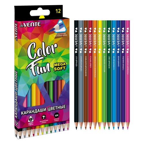 Код товара: 00-00112224Цветные карандаши 12 цв. deVENTE 5022915 Trio Mega Soft, трехгранные