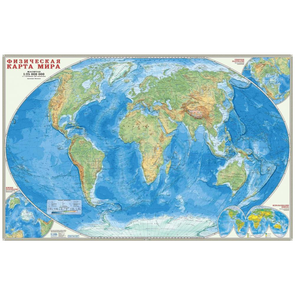 Карта Мира физическая М 1:25млн. 122*79 см Ка132