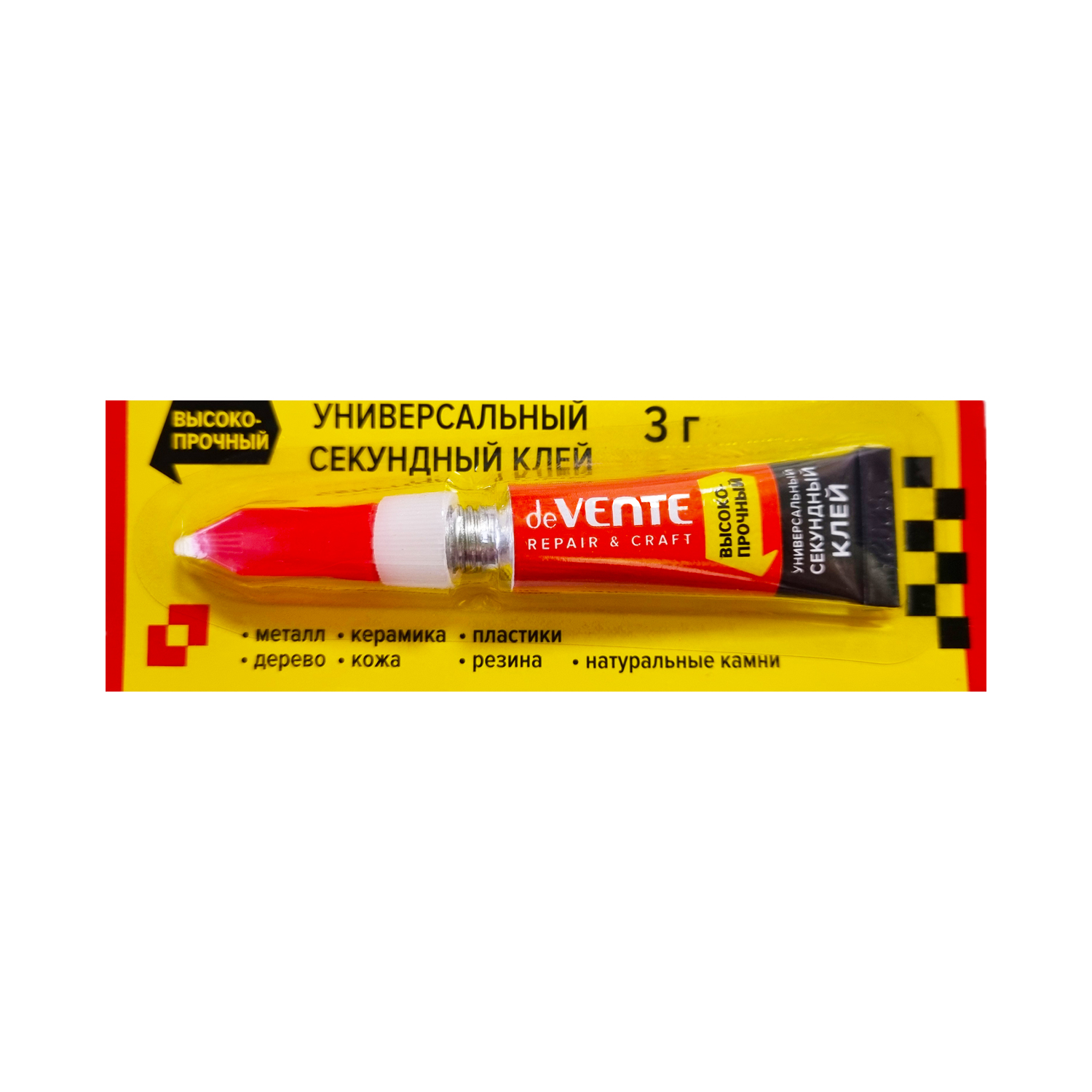 Клей секундный "deVENTE. Super Strong glue" (супер клей) 3 г, универсальный, высокопрочный, концентрированный, в блистерной упаковке, европодвес-отрывная мультикарта Подходит для металла, кожи, пластика, резины, дерева, керамики и натурального камня.