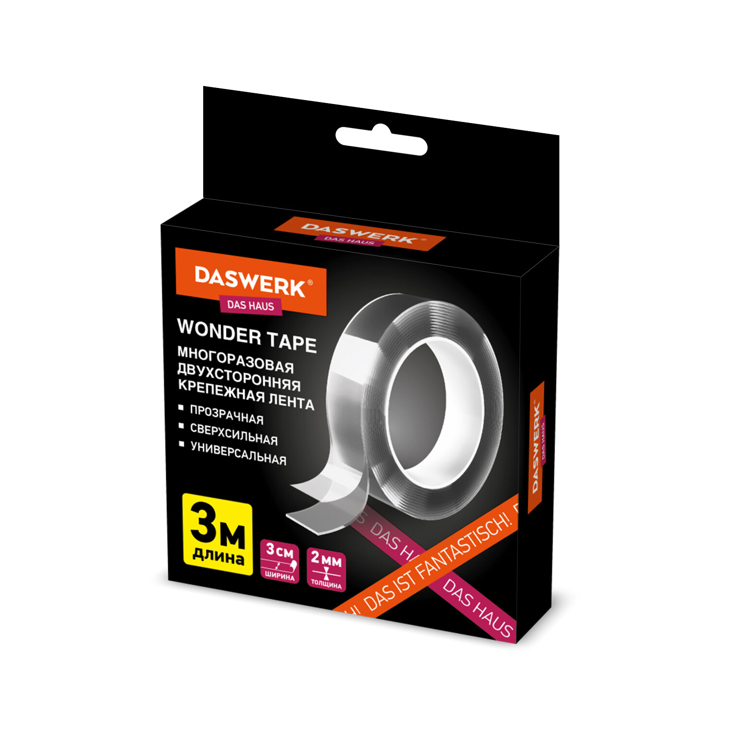 Код товара: 00-00079959Клейкая лента 30мм/3м deVENTE 4163306 Nano Tape толщина 1мм многоразовая