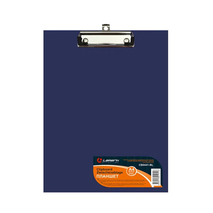 Планшет Lamark c верхним металлическим зажимом выполнен из плотного картона, заламинированного PVC пленкой. Толщина 2 мм. Цвет синий. Для документов формата А4. Еврофурнитура: зажим с подвесом, с пластмассовыми уголками. Широкое применение - склад и логистика, торговые представители, курьерские службы, внешкольные занятия.