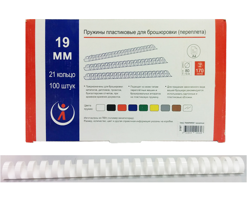 Пластиковая пружина предназначена для переплета документов брошюровщиком. Рекомендуется использовать для переплета документов объемом до 150 листов. Преимуществом является возможность добавить листы в уже переплетенный документ. Совместима с большинством переплетных машин.