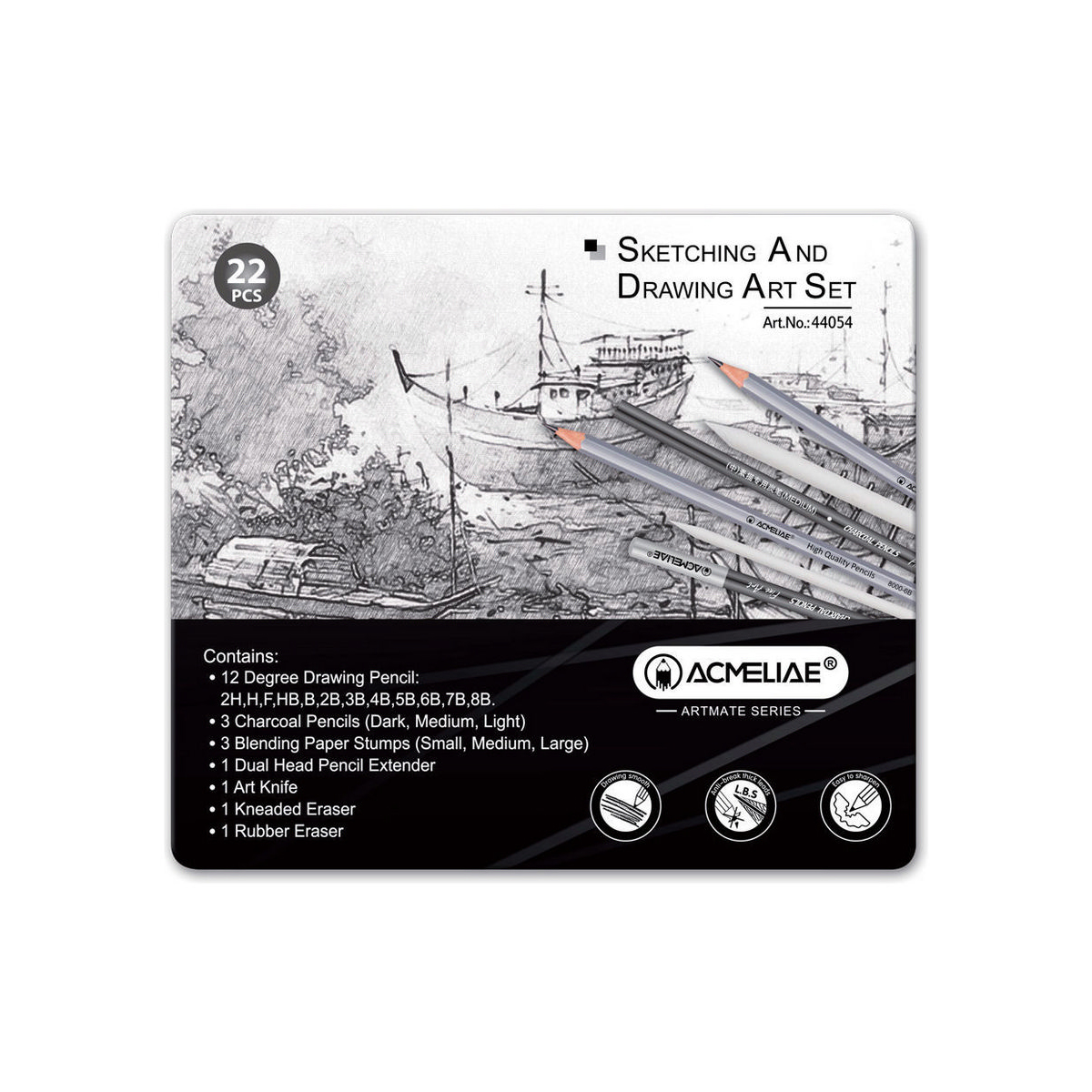 Код товара: 00-00107892Набор для рисования и скетчинга Acmeliae 44054, 22 предмета, в металлическом футляре
