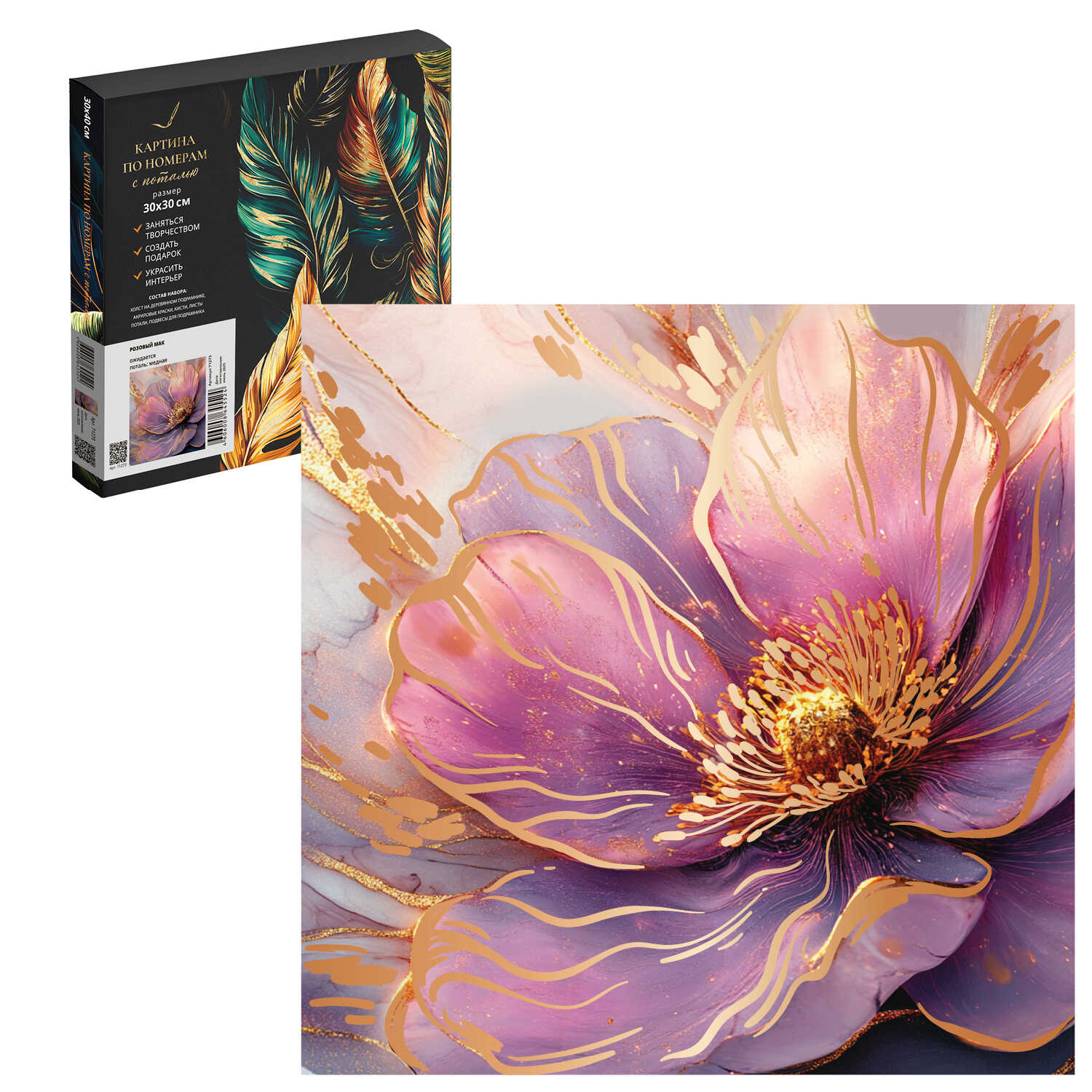 Код товара: 00-00115156Набор для творчества Феникс+ 71273 картина по номерам с поталью 30*30см Розовый мак