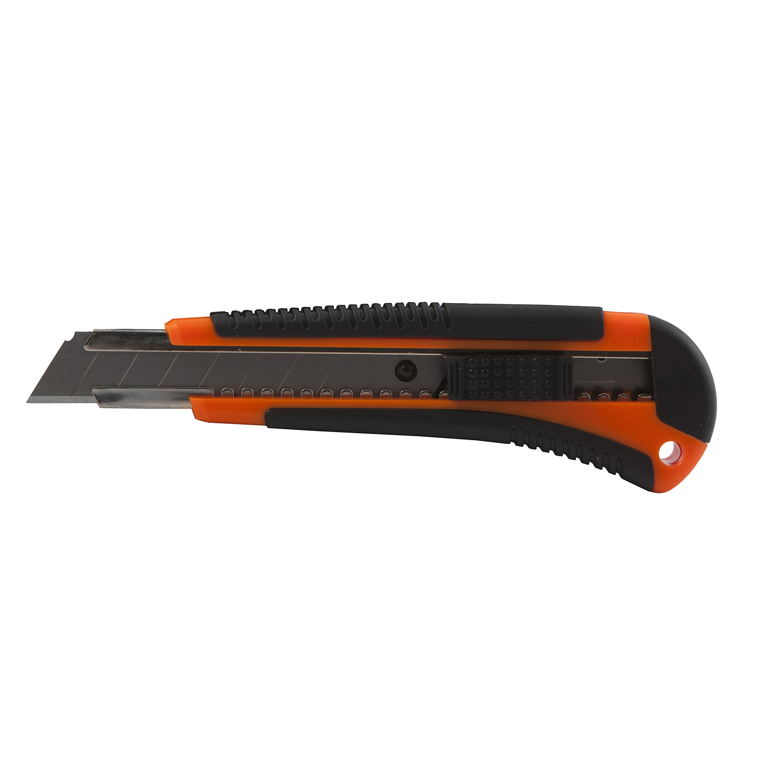 Нож многоцелевой Lamark c металлическими направляющими, ширина лезвия 18 мм. Атоматическая блокировка обеспечит безопасность при работе. Пластиковый эргономичный корпус дополнен вставками против скольжения руки и для снятия напряжения. Лезвие из карбоновой стали снабжено насечками для безопасного и ровного обновления использованного кончика. Поставляется в блистерной упаковке с европодвесом. Имеет широкое применение: склад, логистика, строительство, в быту, в офисе.