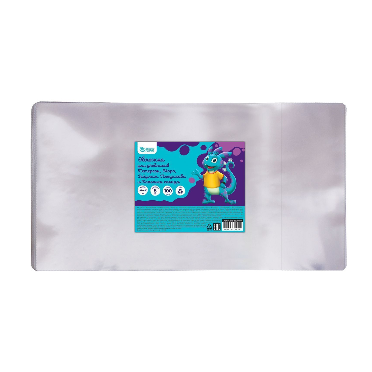Код товара: 00-00095425Обложка для учебников Петерсон/Моро/Гейдман/Капельки/Плешаков 269*480 100мкм ПВХ Schoolformat ОБУ-26