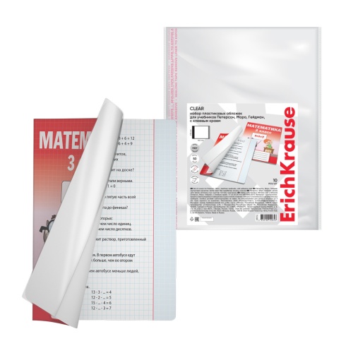 Код товара: 00-00113355Обложка для учебников Петерсон/Моро/Гейдман 276х465мм 50мкм ErichKrause Fizzy Clear 44512, 10шт