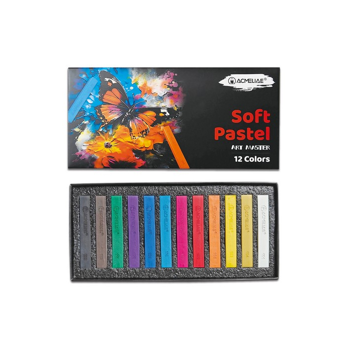 Пастель сухая художественная мягкая 12 цветов для рисования, графики, живописи и декоративных работе. Хорошо ложится на разные поверхности: белую и цветную бумагу (для пастели, акварельную, бархатистую, наждачную), холст, дерево, картон. Оставляет бархатистый след, легко поддается растушевке. Пастель можно наносить на влажную поверхность или размывать водой для достижения акварельного эффекта. Можно рисовать в смешанных техниках. Мягкая художественная пастель позволяет смешивать цвета прямо на бумаге, создавая множество новых оттенков, отличается хорошим сцеплением с поверхностью, отсутствием масла и воска. Подходит для мелкозернистой и ярко выраженной фактурной поверхности. Прямоугольная форма мелков. Угол удобен для тонких линий и деталей, боковая поверхность для тона и широких штрихов. Профессиональные пастельные мелки отличаются мягкостью нанесения, яркими цветами и светостойкостью благодаря высокому содержанию пигмента.