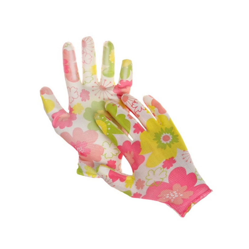 Код товара: 00-00115194Перчатки полиэфирные Садовые цветные, 1 пара, 15 класс, 33-35 г, размер 8, нитрильный латекс