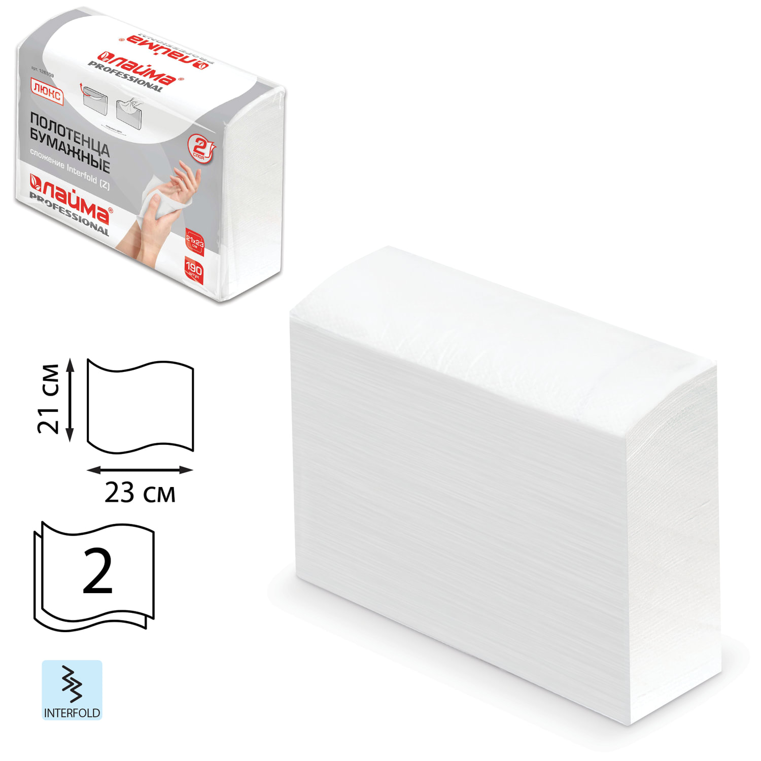 Код товара: 00-00068135Бумага - полотенце 190шт. LAIMA (H2)Люкс, 2сл, белое 23*21, 126559