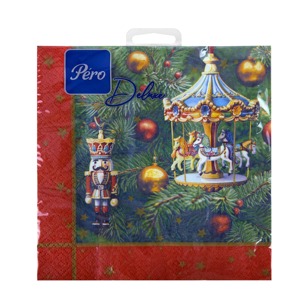 Код товара: 00-00110486Салфетки бумажные 33*33*20шт GrandPero Delux Новогодняя карусель 3-х слойная