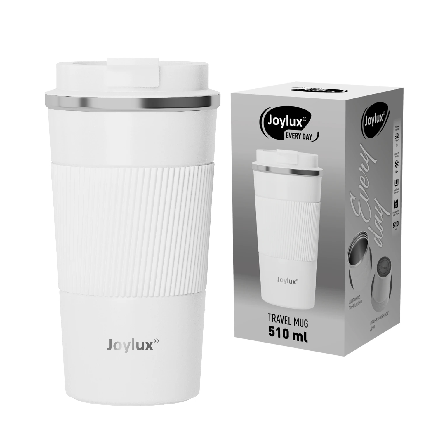 Код товара: 00-00091637Термокружка JOYLUX (ДЖОЙЛЮКС) EVERY DAY 510мл, нерж. сталь, белый матовый, 700293