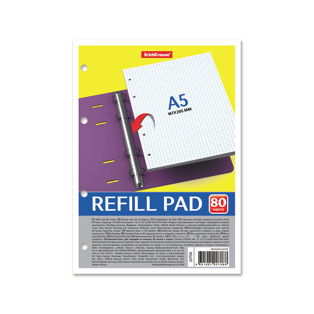 Код товара: 00-00108256Блок сменный для тетради на кольцах А5/80л BG СБ5ту80 12357 белый