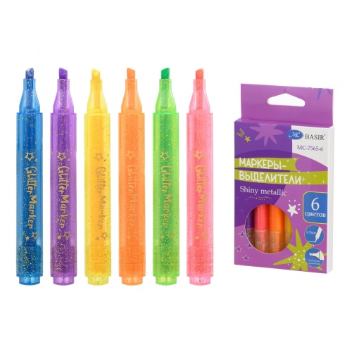 Текстмаркер 6шт.уп. Basir MC-7112-6 двусторонние (наконечник кистевидный + линер)