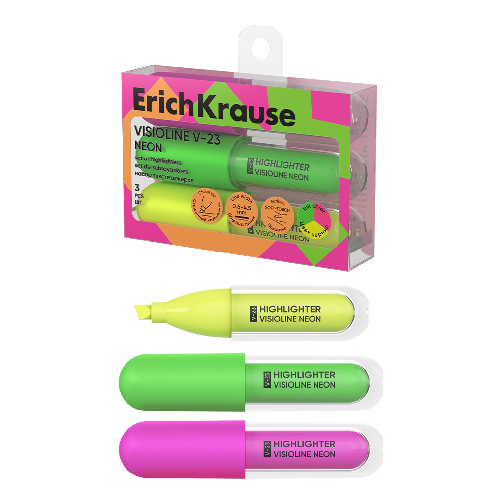 Текстмаркер 3шт.уп. ErichKrause V-23 63553 Neon