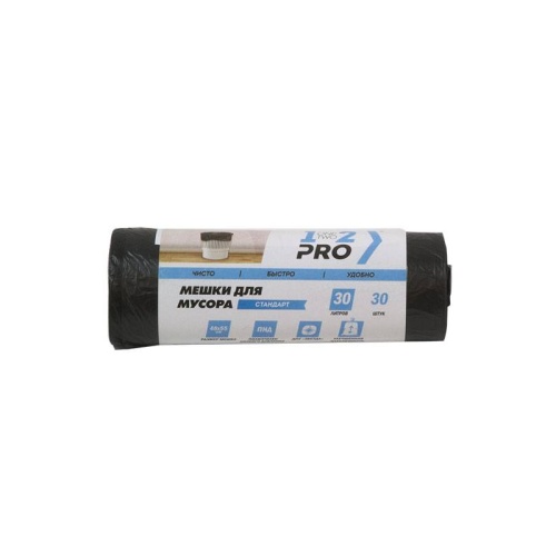 Код товара: 00-00072260Мешки для мусора 30л 20шт 1-2-Pro ММЗН03014-20 50*55 14мкм ПНД, с завязками, 157779